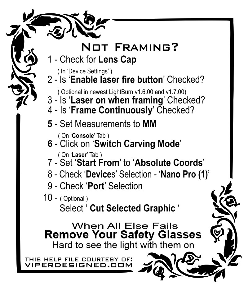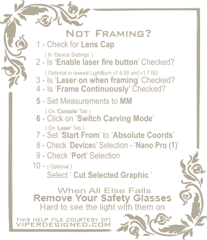 Switch to Millimeters[mm] instead of Inches[in] before framing or engraving.