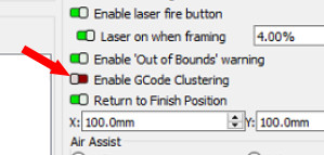 Try turning OFF 'GCode Clustering' in the 'Device Settings'.