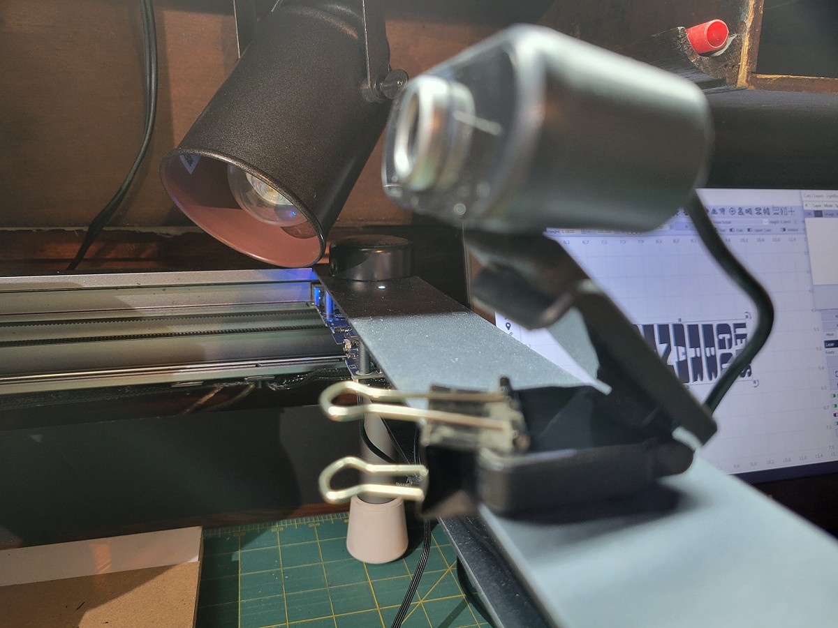 Save your eyes! Watch your work without looking right at it. There are a lot of cams available and you could watch your cam from anywhere. I'm using a generic WebCam and it works just fine. Just use a File Clip to attach